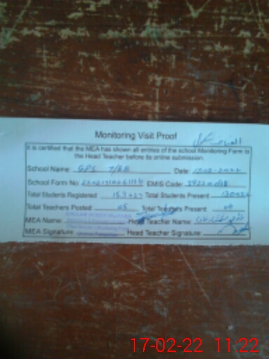 | EMIS Code: 39220098 | Name of School: GPS 7 EB | |||