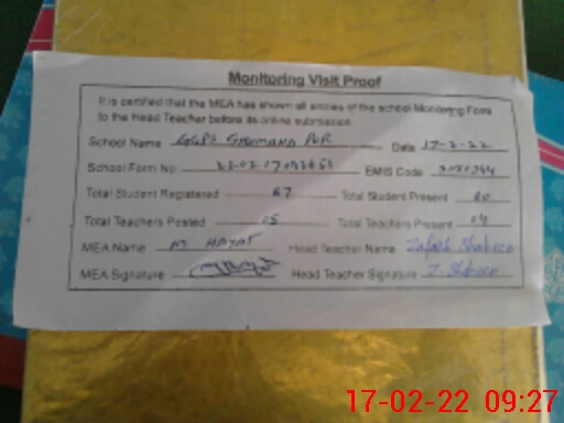 | EMIS Code: 31150344 | Name of School: GGPS GHUMAND PUR | |||