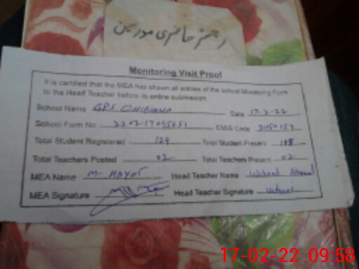 | Certified that this School was Inspected by the Undersigned MEA/DMO Today and the Information Stated Above is as Per Record. | |||||