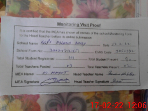 | EMIS Code: 31150342 | Name of School: GGPS ADLANA DHUDDI | |||