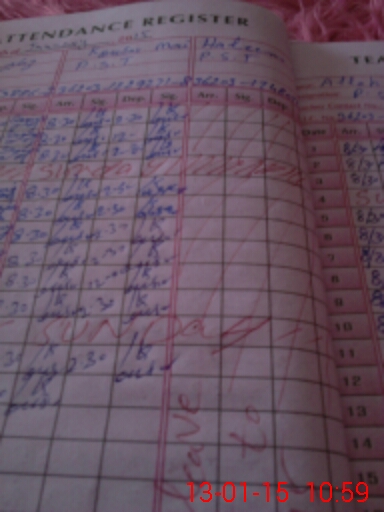 | CNIC | Full Name | Designation | R/C | Absence During Last Calender Month |