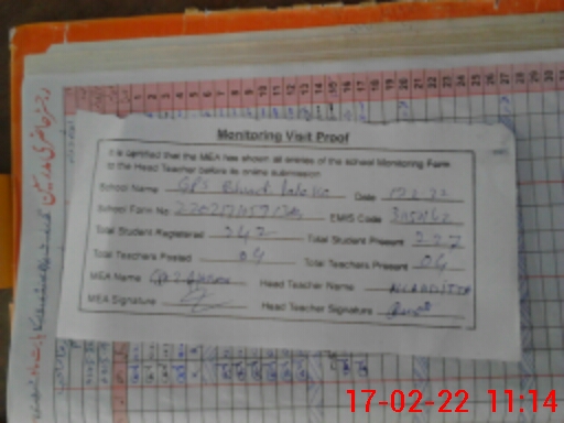 | Attendance Register | Head Teacher | MEA with School | Visit Proof |