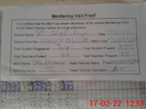 | EMIS Code: 31150139 | Name of School: GPS SUHAIL SINGH | |||