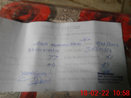 | EMIS Code: 38310354 | Name of School: GGPS MUHAMMAD NAWAZ WALA | |||