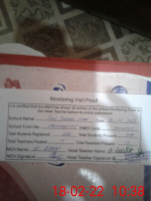 | Certified that this School was Inspected by the Undersigned MEA/DMO Today and the Information Stated Above is as Per Record. | |||||
