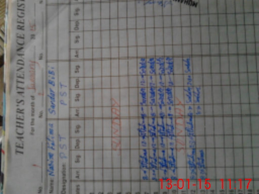 | CNIC | Full Name | Designation | R/C | Absence During Last Calender Month |