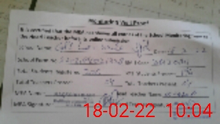 | Monitoring Date: 18-02-2022 | Start Time: 18-02-2022 09:46 AM | End Time: 18-02-2022 10:04 AM | Name of MEA: MA**** ULHA**** KH**** | |