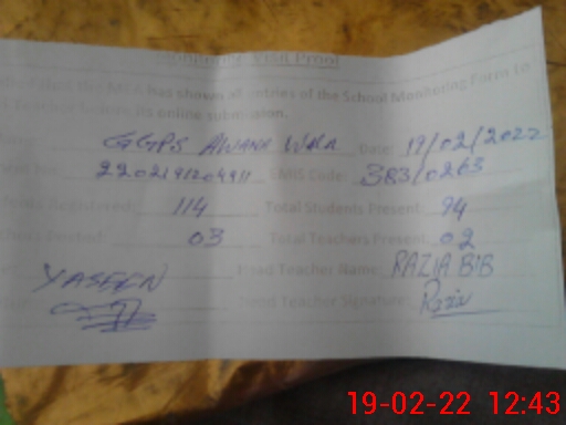 | EMIS Code: 38310263 | Name of School: GGES AWANA WALA | |||