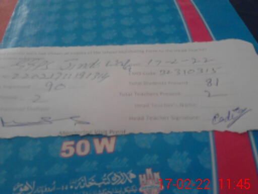 | Name: NA**** AS**** Designation: (School Headmaster's/Headmistress's) PST Phone/Cell Number: 03**** |