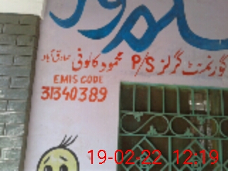 | EMIS Code: 31340389 | Name of School: GGPS MAHMOOD COLONY MUSTAFA TOWN | |||