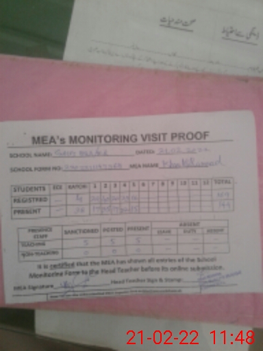 | Certified that this School was Inspected by the Undersigned MEA/DMO Today and the Information Stated Above is as Per Record. | |||||