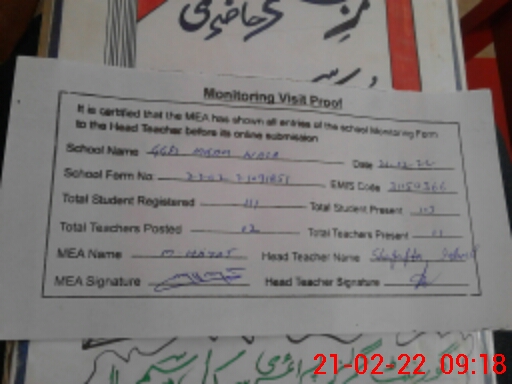 | Certified that this School was Inspected by the Undersigned MEA/DMO Today and the Information Stated Above is as Per Record. | |||||