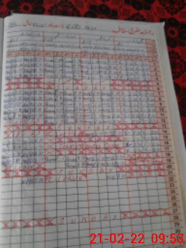 | CNIC | Full Name | Designation | R/C | Absence During Last Calender Month |