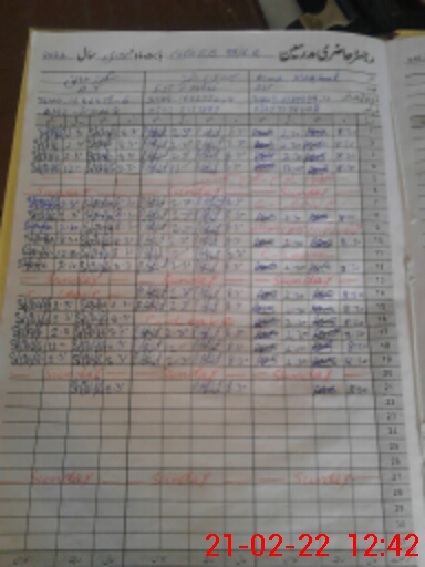 | CNIC | Full Name | Designation | R/C | Absence During Last Calender Month |
