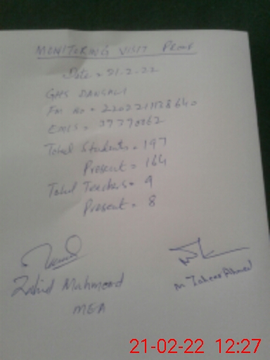 | EMIS Code: 37370062 | Name of School: GHS DANGALI | |||