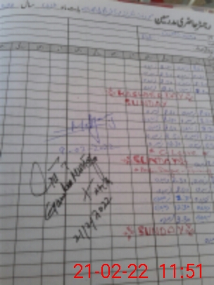 | CNIC | Full Name | Designation | R/C | Absence During Last Calender Month |