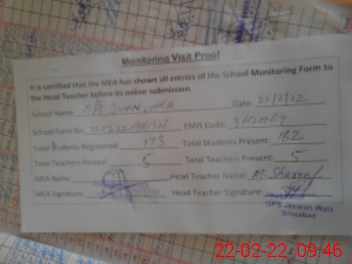 | EMIS Code: 36120067 | Name of School: GPS JIWAN WALA P/O SHUJABAD | |||