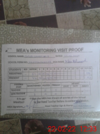 | Certified that this School was Inspected by the Undersigned MEA/DMO Today and the Information Stated Above is as Per Record. | |||||
