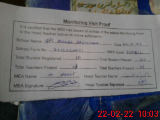 | EMIS Code: 31150202 | Name of School: GPS BONGA BALOCHAN | |||
