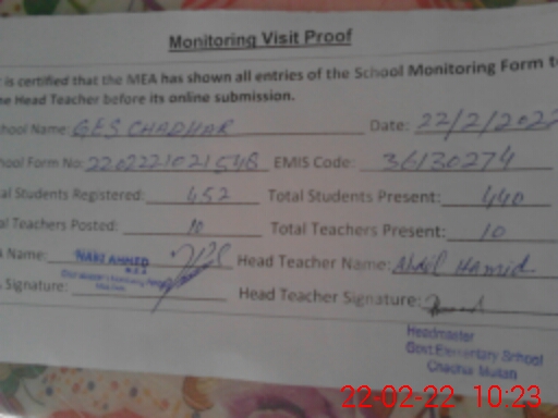 | EMIS Code: 36130274 | Name of School: GES CHADHAR | |||