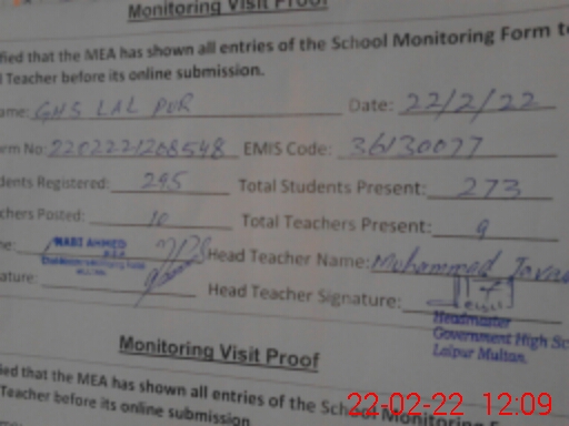 | EMIS Code: 36130077 | Name of School: GHS LAL PUR CHAK NO. 15 FAIZ | |||