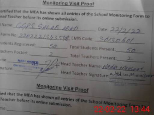 | EMIS Code: 36130801 | Name of School: GGPS SALAB ABAD | |||