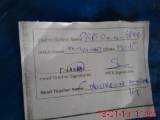 | Attendance Register | Head Teacher | MEA with School | Visit Proof |