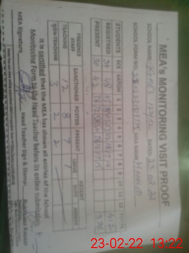 | Certified that this School was Inspected by the Undersigned MEA/DMO Today and the Information Stated Above is as Per Record. | |||||
