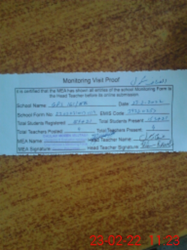 | Certified that this School was Inspected by the Undersigned MEA/DMO Today and the Information Stated Above is as Per Record. | |||||