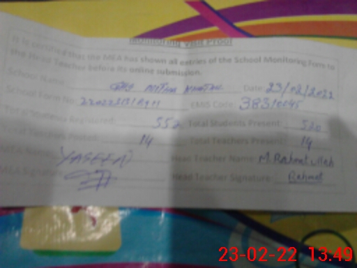 | Certified that this School was Inspected by the Undersigned MEA/DMO Today and the Information Stated Above is as Per Record. | |||||