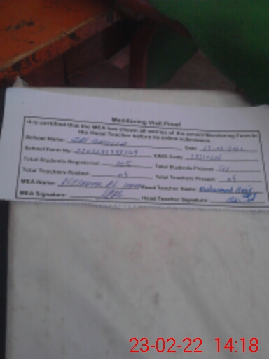 | Certified that this School was Inspected by the Undersigned MEA/DMO Today and the Information Stated Above is as Per Record. | |||||