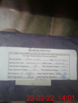| Certified that this School was Inspected by the Undersigned MEA/DMO Today and the Information Stated Above is as Per Record. | |||||