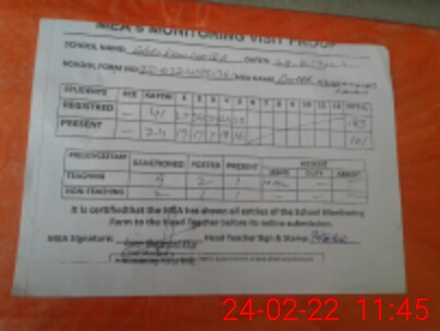 | Attendance Register | Head Teacher | MEA with School | Visit Proof |