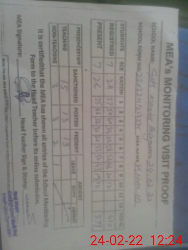 | Certified that this School was Inspected by the Undersigned MEA/DMO Today and the Information Stated Above is as Per Record. | |||||