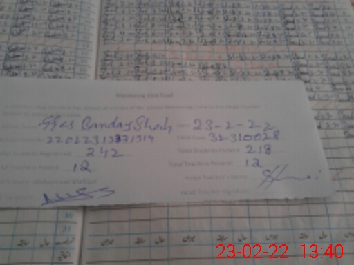 | EMIS Code: 32310028 | Name of School: GGES BANDAY SHAH | |||