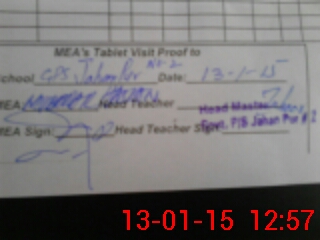 | Attendance Register | Head Teacher | MEA with School | Visit Proof |