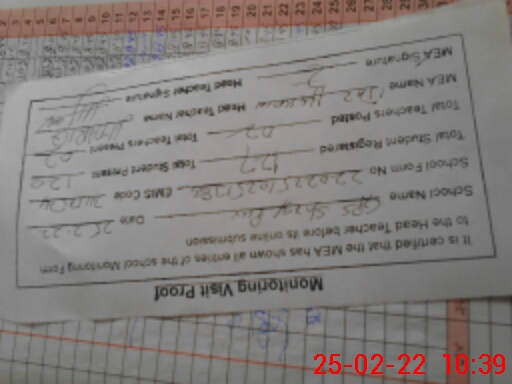 | Certified that this School was Inspected by the Undersigned MEA/DMO Today and the Information Stated Above is as Per Record. | |||||