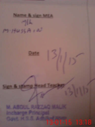 | Certified that this School was Inspected by the Undersigned MEA/DMO Today and the Information Stated Above is as Per Record. | |||||