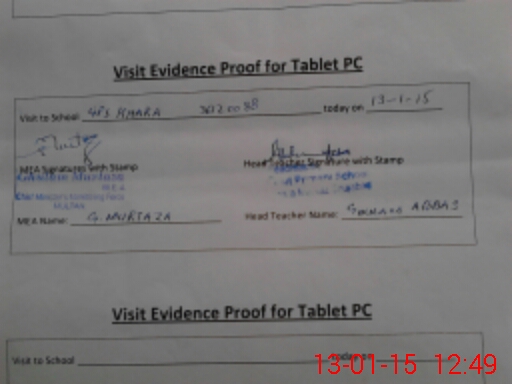 | Attendance Register | Head Teacher | MEA with School | Visit Proof |