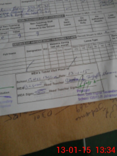 | Attendance Register | Head Teacher | MEA with School | Visit Proof |