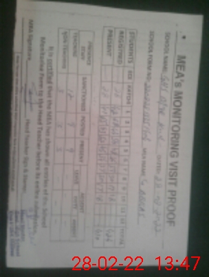 | Attendance Register | Head Teacher | MEA with School | Visit Proof |