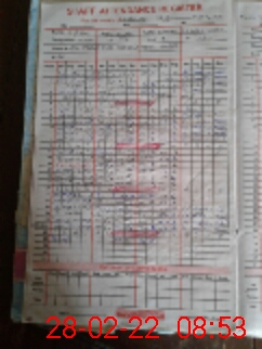 | CNIC | Full Name | Designation | R/C | Absence During Last Calender Month |