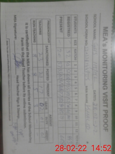 | Attendance Register | Head Teacher | MEA with School | Visit Proof |