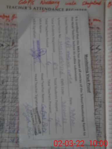 | Attendance Register | Head Teacher | MEA with School | Visit Proof |