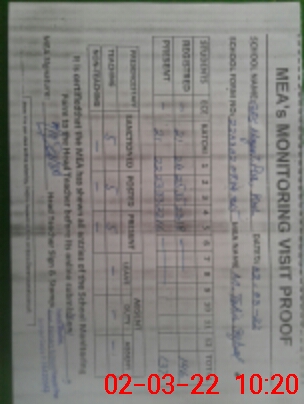 | Attendance Register | Head Teacher | MEA with School | Visit Proof |