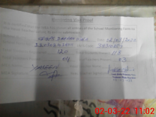 | Certified that this School was Inspected by the Undersigned MEA/DMO Today and the Information Stated Above is as Per Record. | |||||