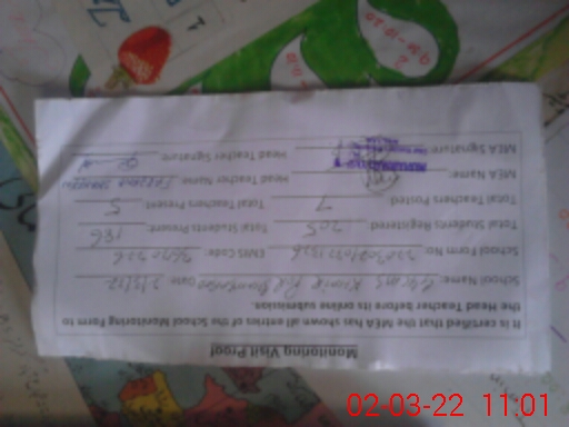 | Attendance Register | Head Teacher | MEA with School | Visit Proof |
