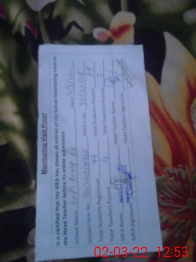 | Certified that this School was Inspected by the Undersigned MEA/DMO Today and the Information Stated Above is as Per Record. | |||||