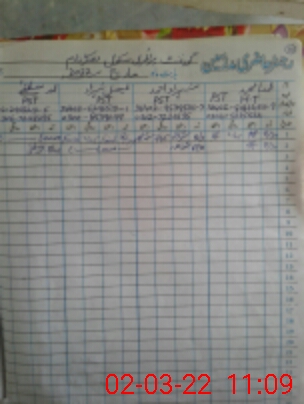 | Name: MU**** MU**** Designation: (School Headmaster's/Headmistress's) PST Phone/Cell Number: 03**** |