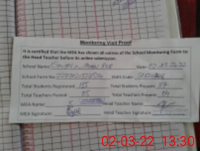 | Attendance Register | Head Teacher | MEA with School | Visit Proof |